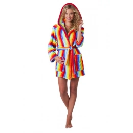 Krátký 3/4 župan s kapucí a kapsami.