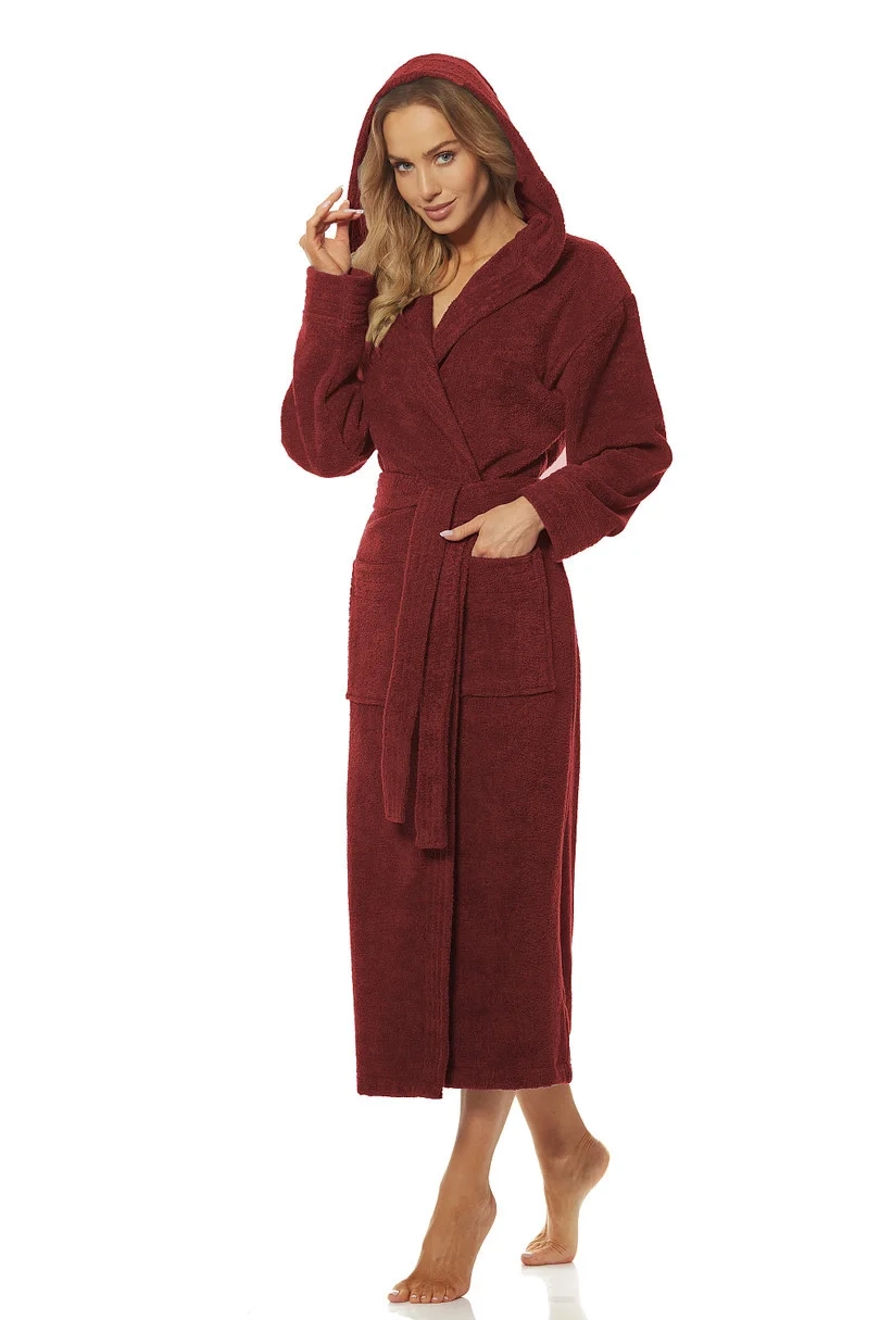 Dámský dlouhý froté župan na zavazování v pase. Materiálové složení: 100% Bavlna