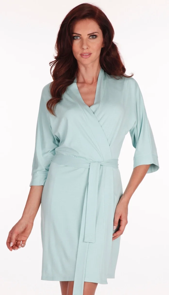Dámský, jednobarevný lehký župan na zavázání. Materiálové složení: 94% viskóza, 4% elastan.