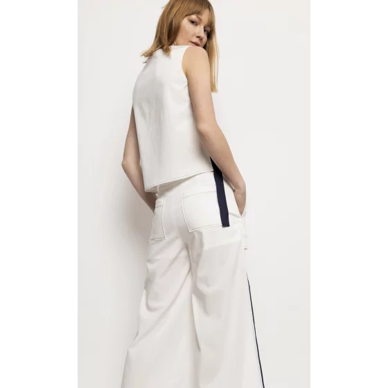 Jednoduchý top s ozdobným kontrastním páskem na bočním švu.98% Tencel 2% PolyesterPokyny pro péči: Pokyny pro praní: Ruční praní nebo profesionální chemické čištěníKolekce: Jaro/LétoBarva: BíláPohlaví: Ženské
