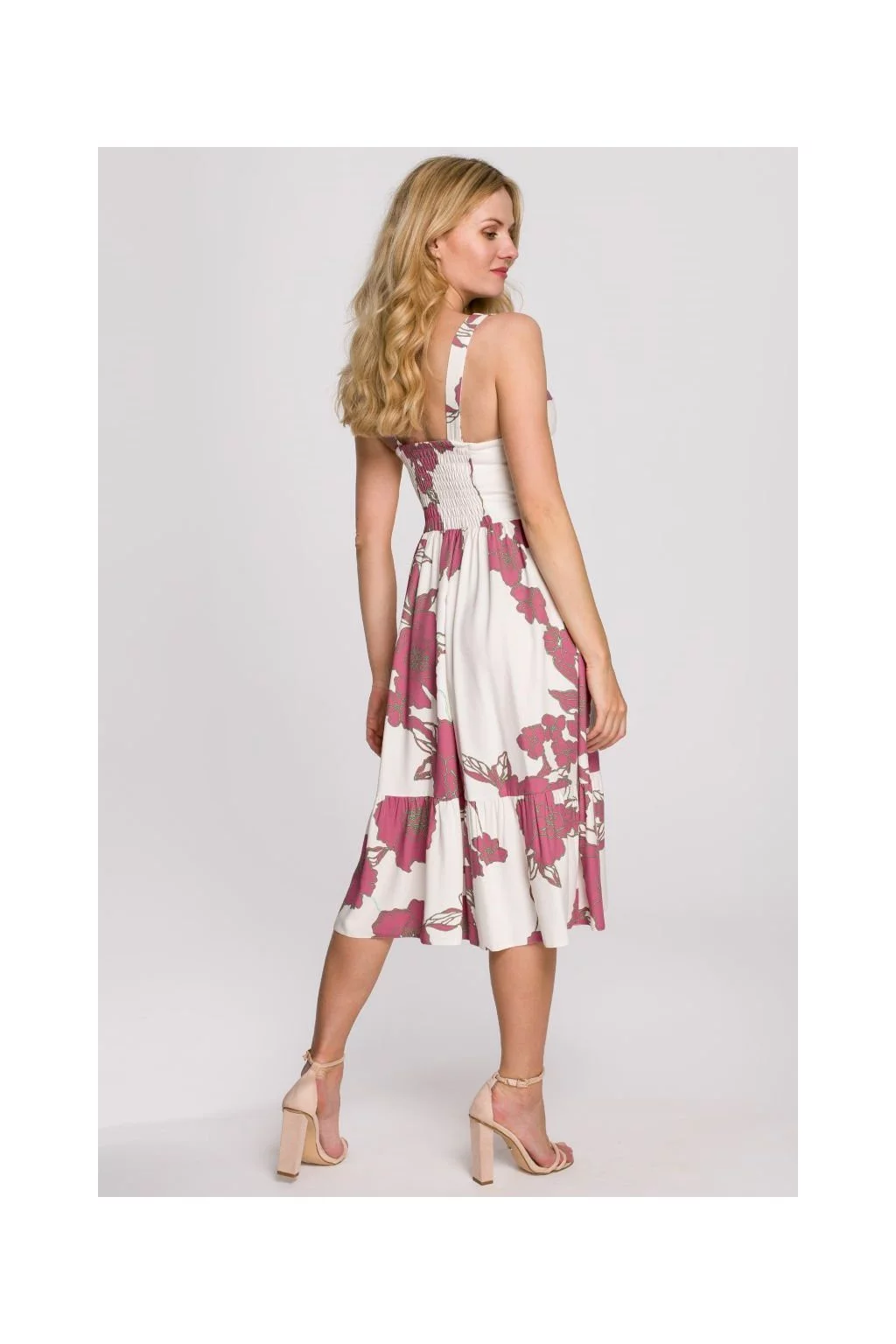 Dámské šaty K098 bílé se vzorem - Makover bílá s květinovým vzorem S