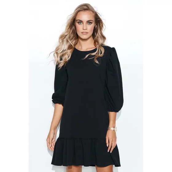 Romantické šaty ze vzdušné tenké pletené mikiny. Velmi příjemné nošení. Doporučujeme zejména pro rovné siluety. Šaty mají mírně nařasené rukávy zakončené stuhou a kulatý výstřih. Proto z něj budou nadšené zejména dámy s malými prsy. V přední části šatů je našita jemná ozdobná aplikace. Spodní část šatů je zakončena lehkým volánkem. Šaty nezakrývají tělo, jsou velmi pohodlné, takže v nich můžete pohodlně strávit celý den.
