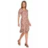 Dokonalý styl letního vzhledu. Jednoduché šaty s výstřihem a asymetrickým volánem. Krásný květinový potisk a tlumené barvy na viskóze šetrné k pokožce. Šaty jsou bez podšívky.
