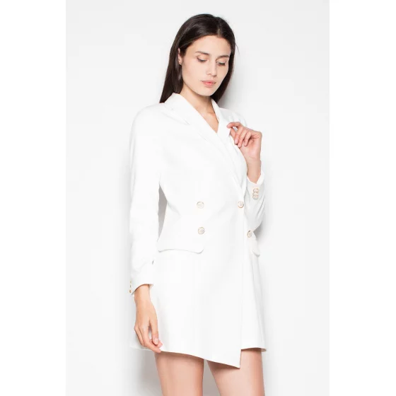 Elegantní žaketové šaty se zapínají na ozdobné knoflíky, které se objevují i na rukávech. Šaty jsou k dispozici v klasických barvách. Lze nosit i jako sako.
