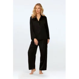 Pyžamo Amina je vyrobené z kvalitního saténu, je dlouhé a má elegantní černou barvu. Složení: 100% polyester (satén)