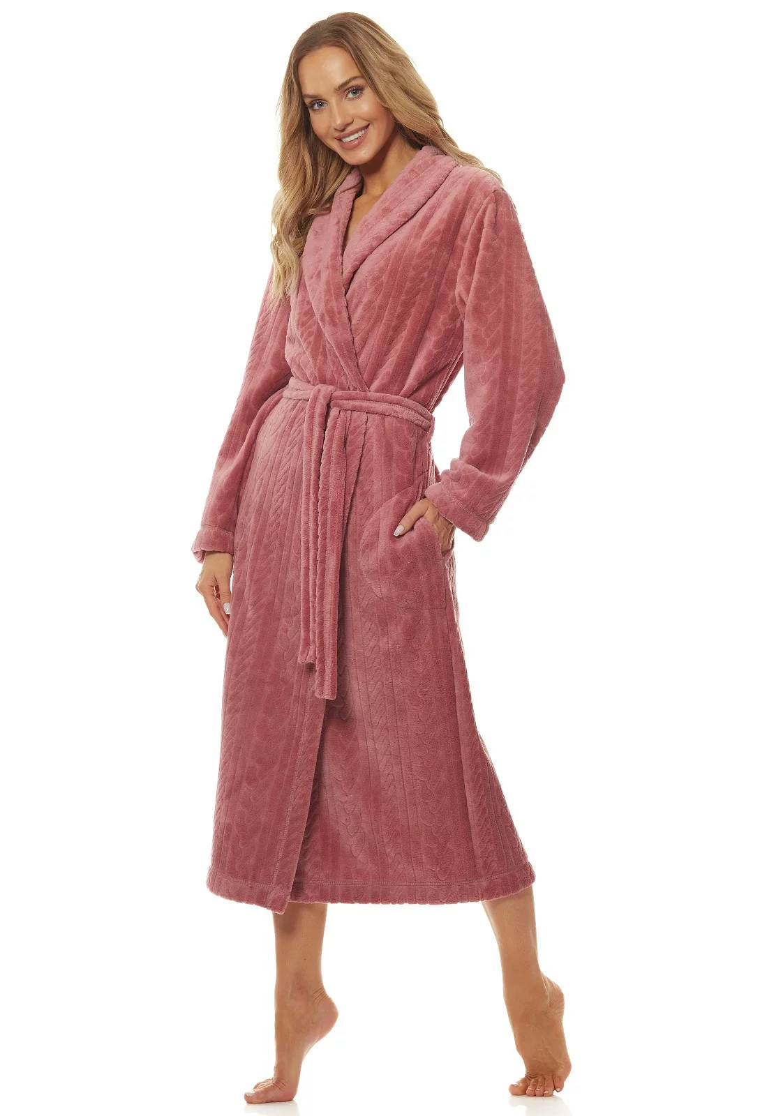 Dlouhý dámský župan - se šálovým límcem - zavazuje se v pase - s kapsami na bocích - příjemný materi