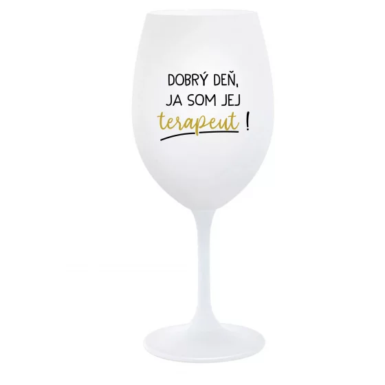DOBRÝ DEŇ, JA SOM JEJ TERAPEUT! - biely pohár na víno 350 ml