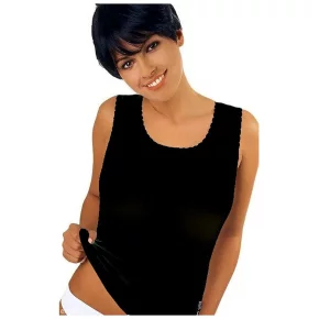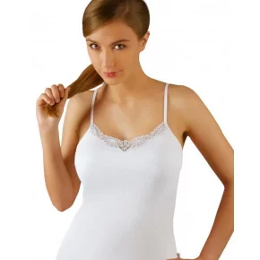 Dámské tílko s úzkými ramínky je vyrobené z příjemné bavlny (100%). Dekolt je zdobený všitou krajkou