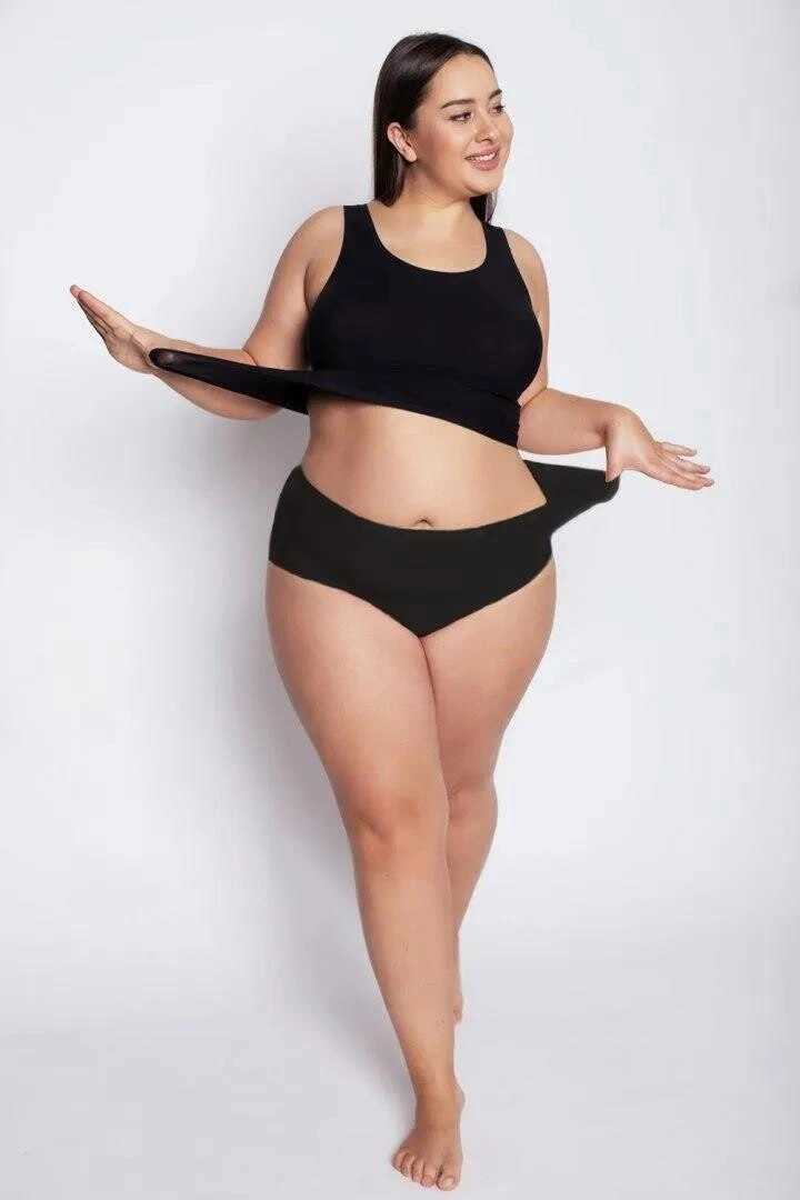 Maxi kalhotky dostupné v jedné univerzální velikosti (Plus size!). Jsou vyrobeny z měkké pleteniny, která se skvěle natahuje a rychle se vrací do původního tvaru. Lehký strečový materiál je dokonale prodyšný a velmi rychle schne.Složení:80% polyamid, 20% elastan.