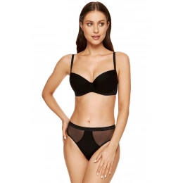 Podprsenka značky Gorteks, model Andrea/B1, má drátky, které podporují a tvarují prsa. Svislé kostice na bocích. Výrobek má nastavitelná ramínka s možností jejich odepnutí. Zapínání na háčky. Místo zapínání: na zádech. 2 řady svislých výšivek. 3 stupně vodorovných výšivek.