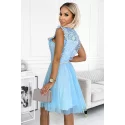 GRETA - dámské šaty s krajkou, tylovou spodní částí a zlatým opaskem.