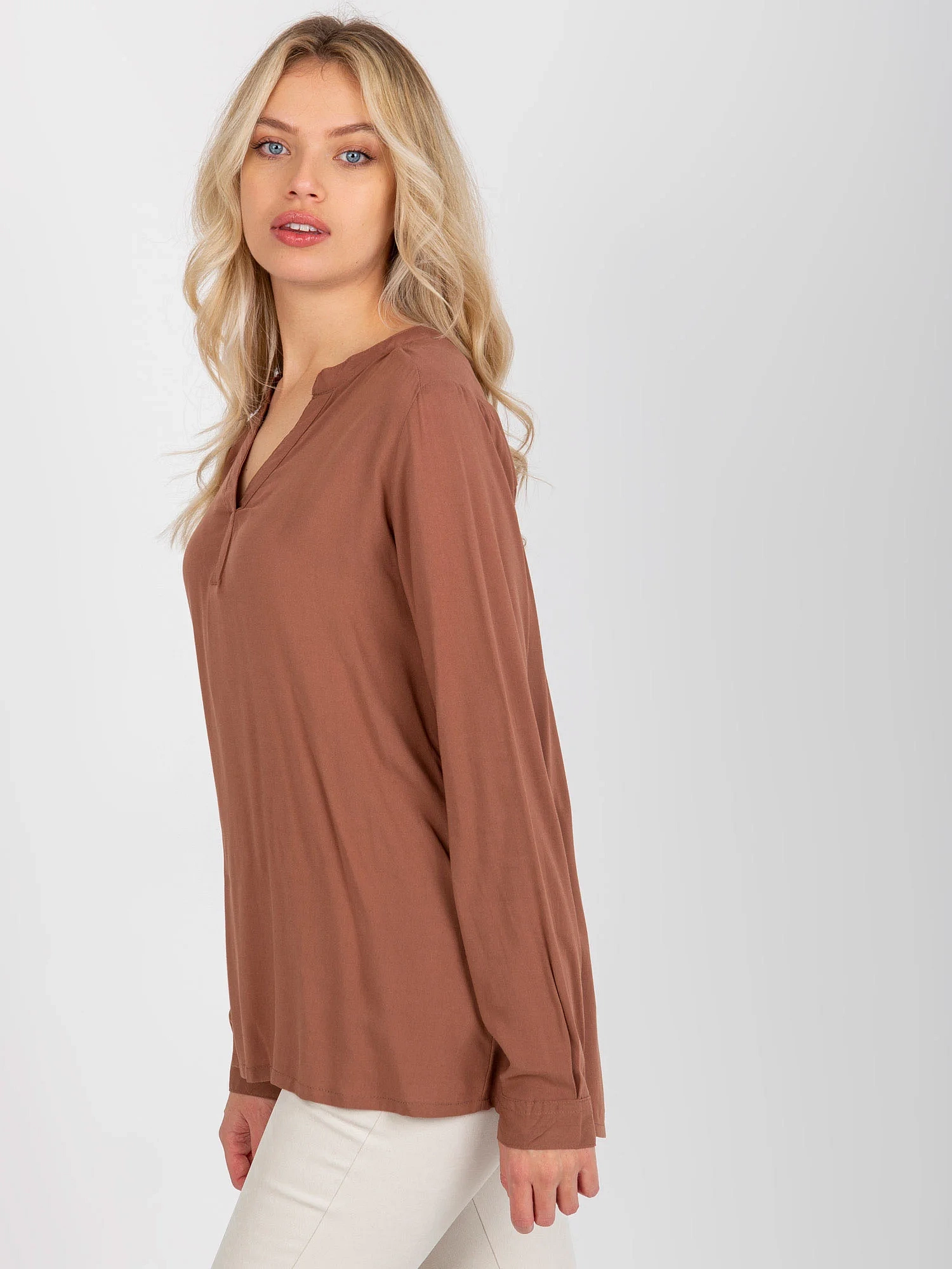 Hnědá dámská viskózová halenka volného střihu SUBLEVEL .