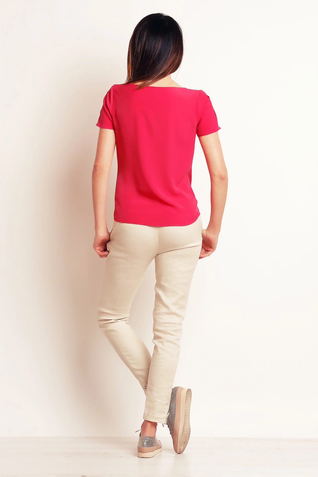Elegantní halenka s krátkým rukávem. Prezentovaná velikost: 36, výška modelu: 172.