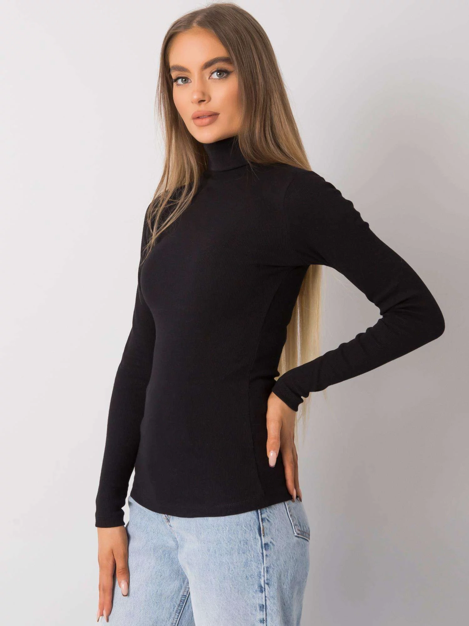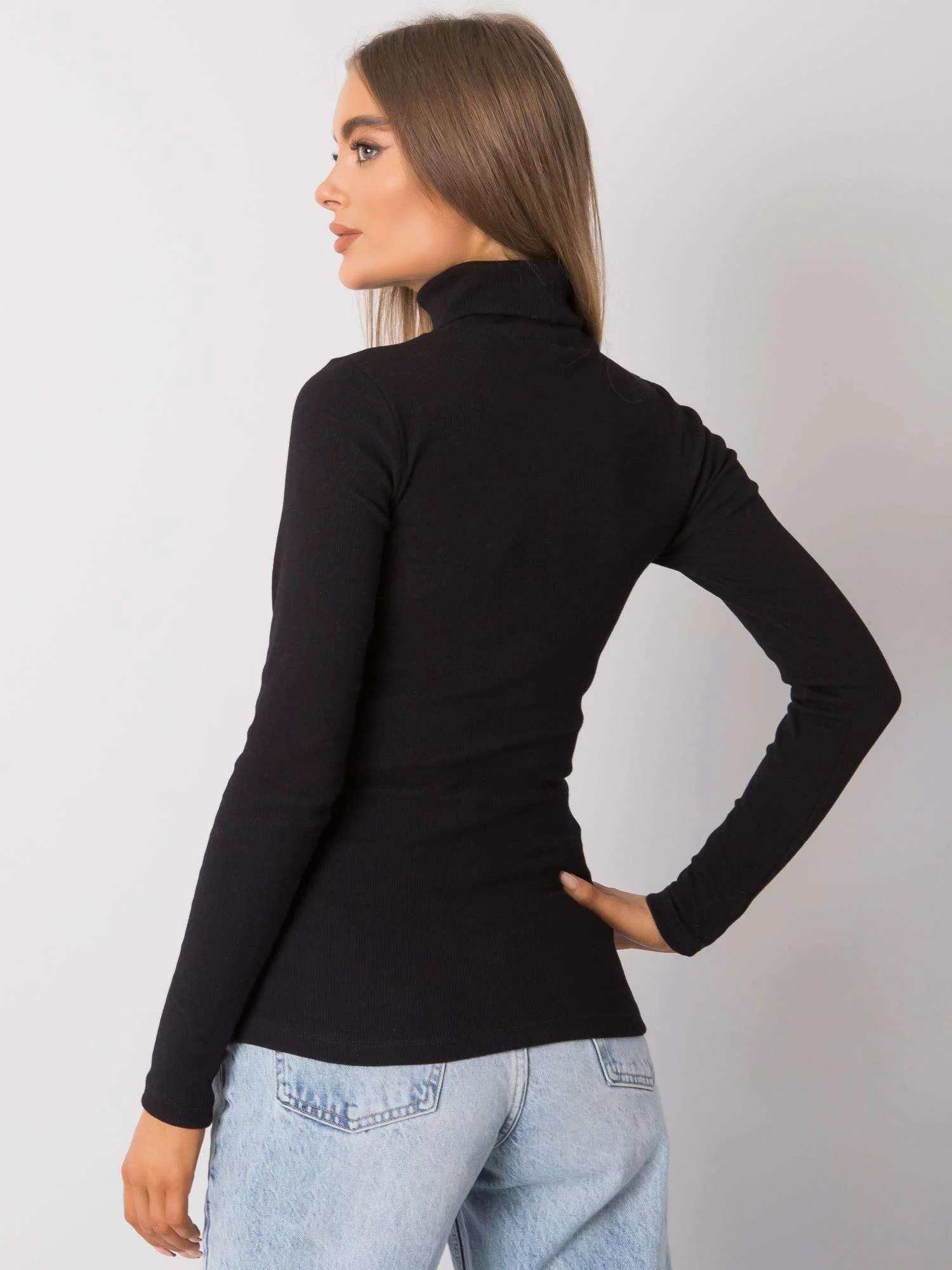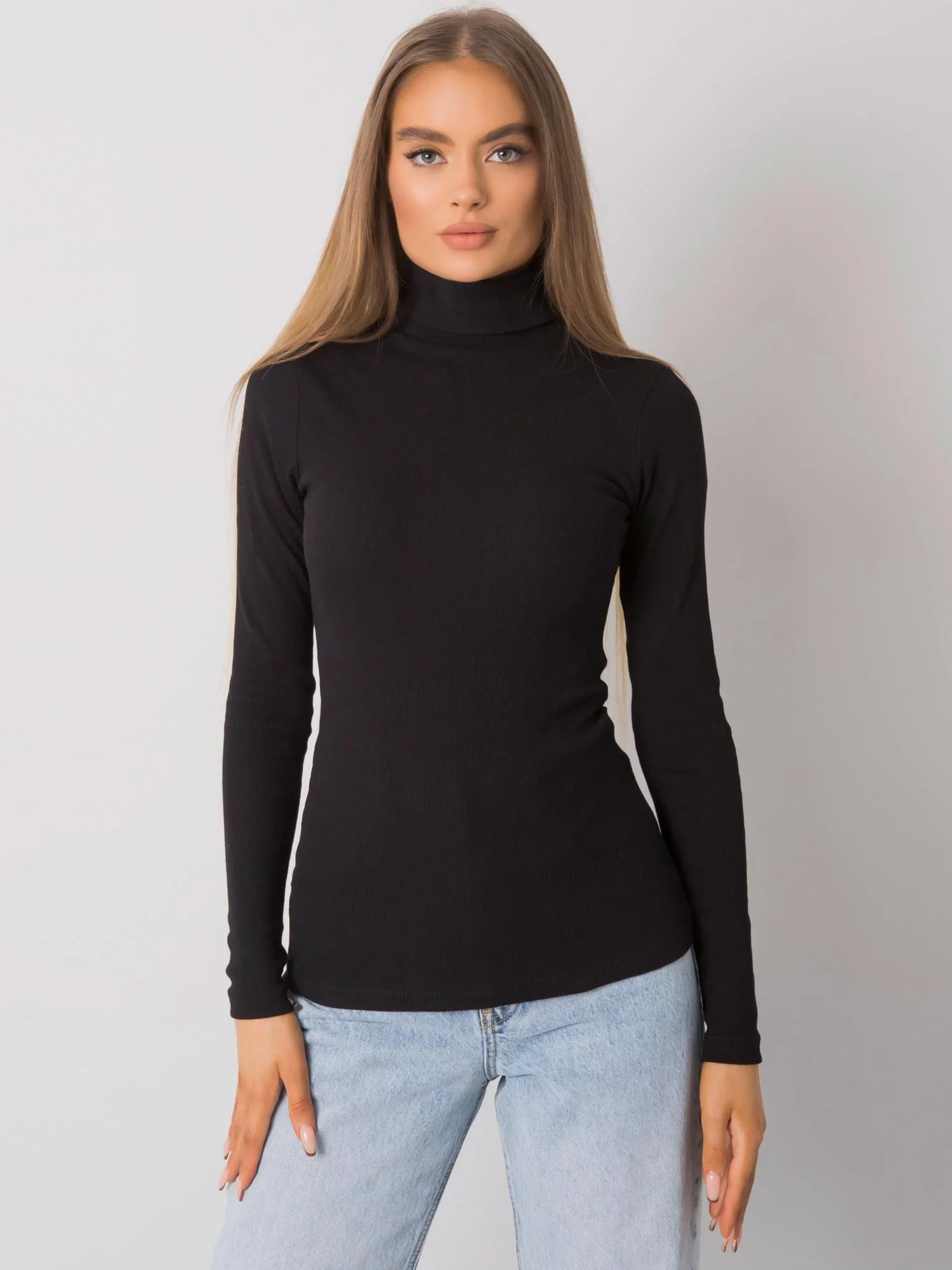 RUE PARIS Černý žebrovaný rolák pro ženy.