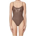 Třpytivé plavky s nízkým výstřihem vzadu a tenkými ramínky. S nápisem Diesel přes hrudník. Materiál: 50 % Polyester, 20 % Elastan-Spandex, 16 % Polyamid-Nylon, 14 % Kovové vlákno