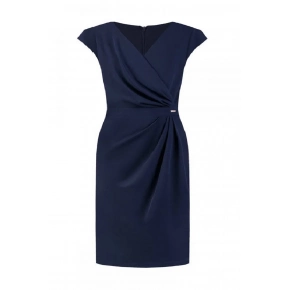 Přiléhavé šaty s řasením vpředu. Překrývající se výstřih, v pase přestřižený. Šaty mají skrytý zip.