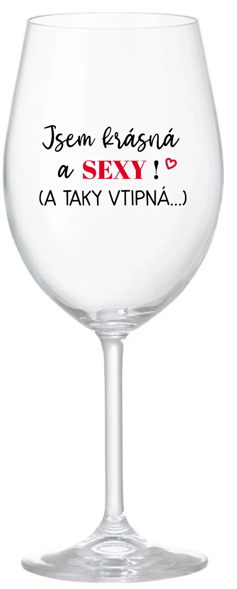 Vinná čirá sklenice s originálním motivem JSEM KRÁSNÁ A SEXY! (A TAKY VTIPNÁ...) je krásným a osobitým dárkem, které ale využijete i Vy sami třeba ve chvílích, kdy si budete chtít zpříjemnit náročný den. Tyto originální vinné sklenice jsou totiž nejen pro výjimečné události, ale i pro běžné večery, které si chcete zpříjemnit sklenkou dobrého vína. Jistě proto potěší každého milovníka vína, i toho, kdo si umí svůj život vychutnat plnými doušky.