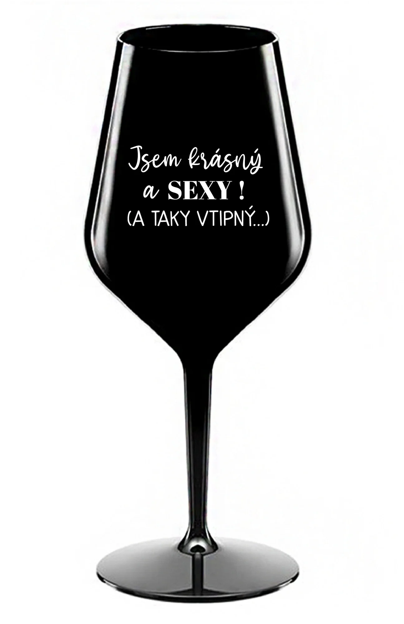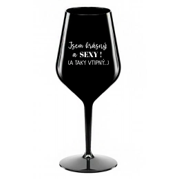 Nerozbitná černá vinná sklenice s motivem JSEM KRÁSNÝ A SEXY! (A TAKY VTIPNÝ...) je skvělá na zahradu, pláž, výlet, piknik a parádu udělá i při kempování. Jelikož je vyrobená z kvalitního polykarbonátu je de facto nerozbitná. Je to luxusní kousek, s nímž si víno můžete vychutnat prostě kdekoliv. Mají ergonomický tvar, který příjemně padne do ruky a protože je lehká, usnadňuje to její přenášení. Je snadno skladovatelná a lehce se čistí. Díky svému designu si s ní můžete vychutnat doopravdy kdekoliv bezproblémové pití výborného vína.
