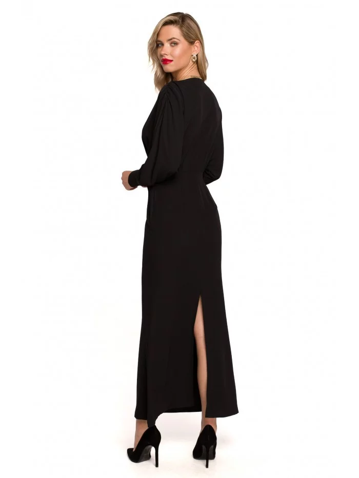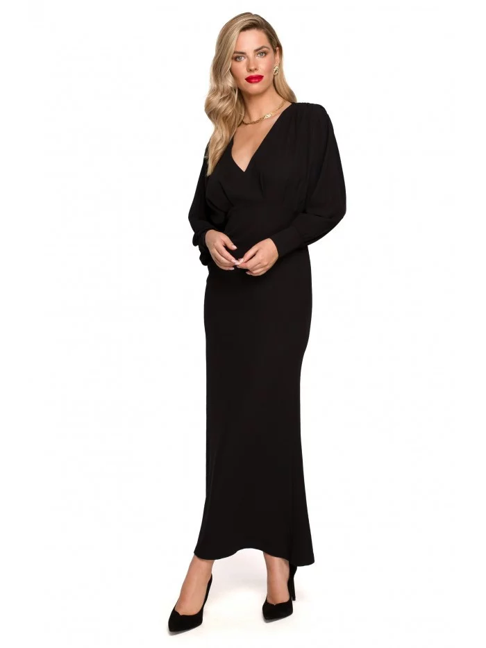 Tyto krásné večerní šaty mají siluetu formující střih s dlouhými netopýřími rukávy, které vlají na ramenou, zakončené dlouhými manžetami a vysokým rozparkem na zádech.PODROBNOSTI O PRODUKTU: šaty v délce maxi z tkané látky s rozparky na zádech kimonové rukávy zakončené manžetami na knoflíky skrytý boční zip bez podšívky naše modelka je 176 cm vysoká a nosí velikost