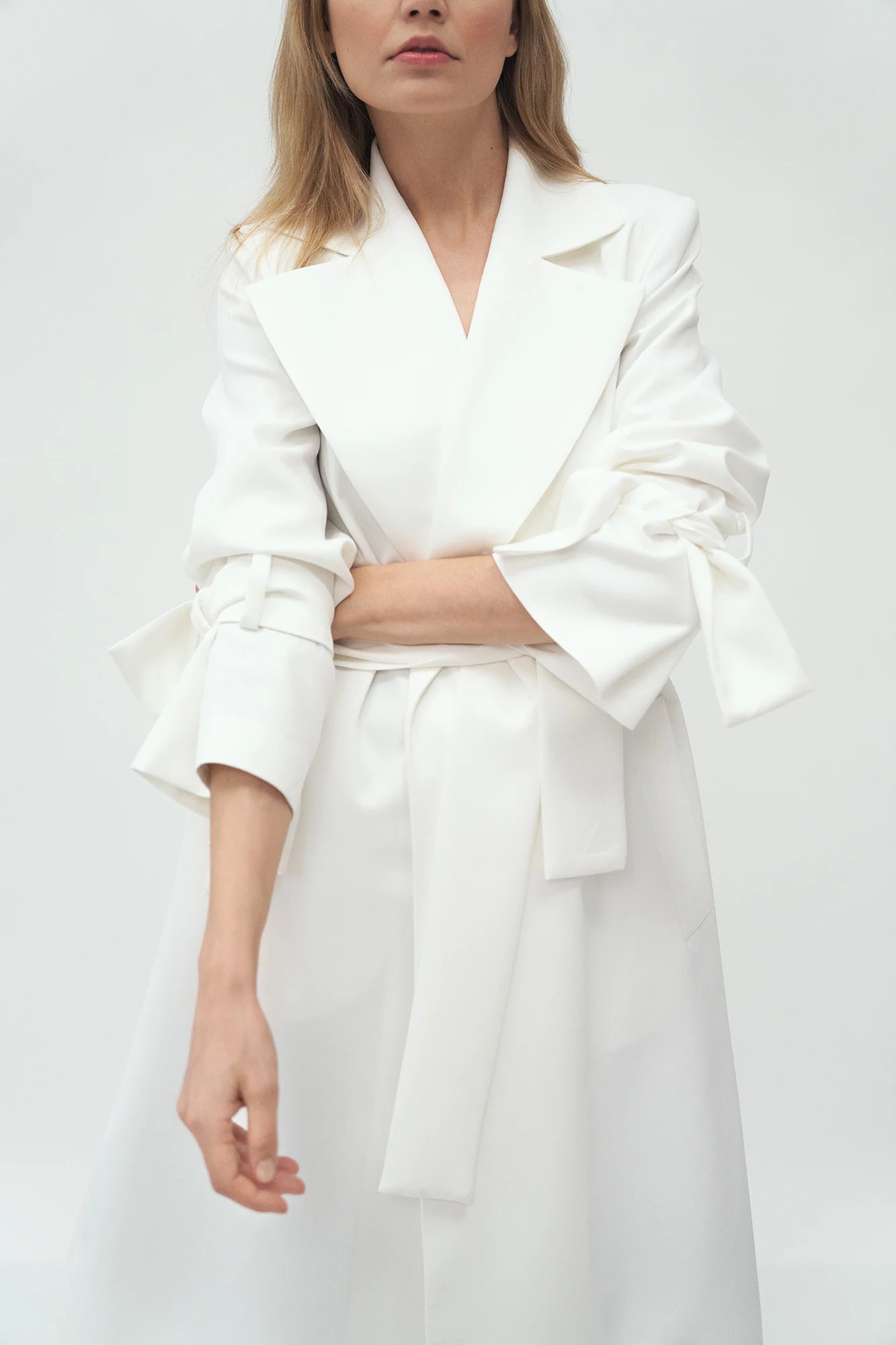 Kabát s délkou ke kolenům, páskem na zavázání v pase, širokými klopami a předními kapsami. Pásky na zavazování v manžetách umožňují upravit délku rukávů.100% polyesterBarva: ecruKolekce: Jaro/PodzimPohlaví: Ženské