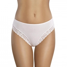 Hezké dámské kalhotky Ganidar 41 klasického střihu s vyšším pasem lemované krajkou. Dostupné jsou v bílé a černé barvě.
