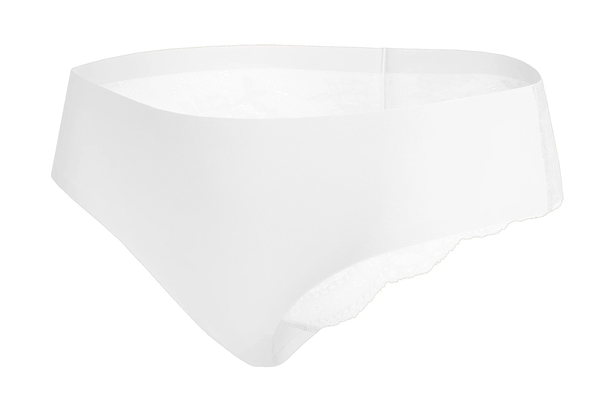 Dámské kalhotky se sníženým pásem, s ultratenkým zakončením okrajů technologii INVISIBLE LINE. Netlačící, nejsou vidět pod oblečením. Zadní část z jemné krajky. Poskytují pocit lehkosti a komfortu. Baleno v krabičce s dekorativní mašličkou. Ideální jako dárek.