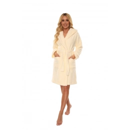 Tento krátký, ultra pohodlný dámský župan s kapucí je vyroben z měkkého úpletu a je ideální pro chladné večery. Má zavazování v pase a praktické velké nakládané kapsy.