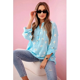 Hledáte stylovou, pohodlnou a univerzální halenku? Tato košilová halenka s potiskem sedmikrásek je perfektní volbou pro každou příležitost! Je vyrobena z lehkého, prodyšného materiálu, který je ideální na jaro a léto. Volný střih zajišťuje volnost pohybu a jemný květinový vzor dodává ženský šarm. Dlouhé rukávy s možností ohrnutí umožňují různé způsoby nošení podle vašeho stylu.