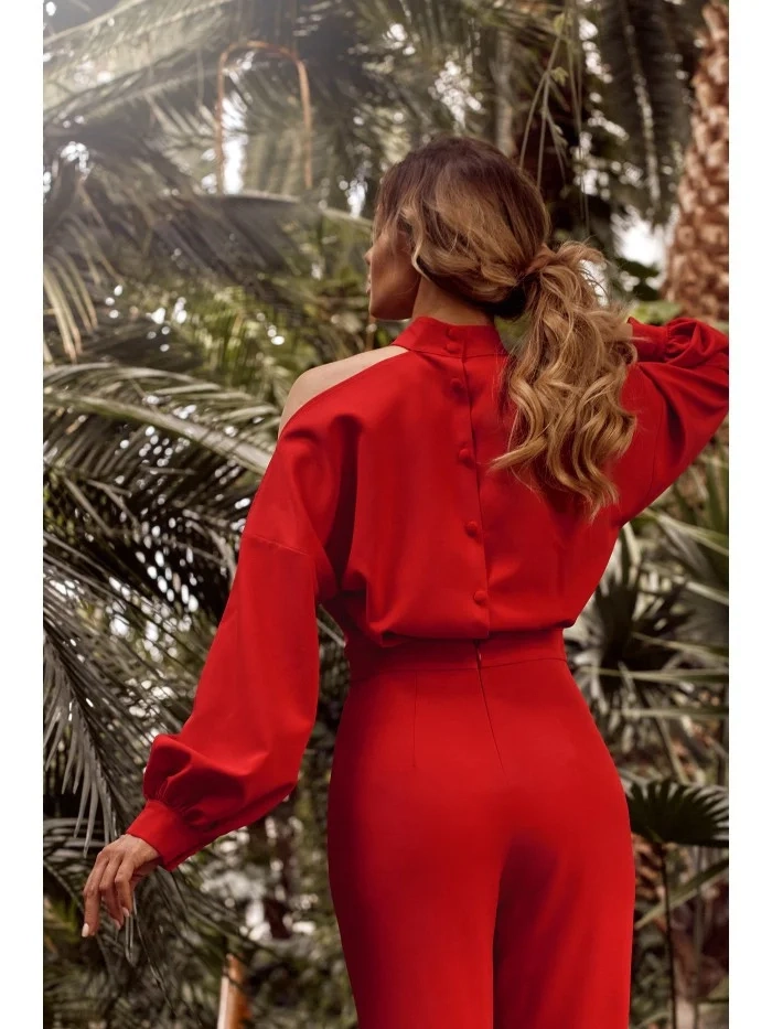 Tento jedinečný overal je elegantní alternativou ke společenským šatům. Díky nádherným dlouhým biskupským rukávům zakončeným manžetami a extravagantnímu výstřihu s bočním rozparkem na rameni jistě zazáříte. PODROBNOSTI O PRODUKTU: tkaná látka jednodílný overal s dlouhými biskupskými rukávy a manžetami na knoflíky stojáček asymetrický výstřih s rozparkem na jednom rameni ozdobné zapínání na knoflíky na zádech a skrytý zip široké nohavice bez podšívky naše modelka je vysoká 171 cm a nosí velikost S