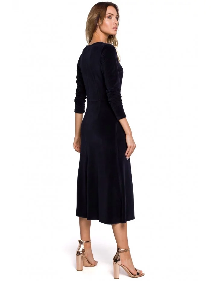Je klasický, elegantní a vyrobený ze sametu! Tento nádherný kousek vám bude krýt záda při všech příležitostech na konci roku. Díky vypasovanému střihu a jemně nabraným rukávům působí velmi žensky a elegantně. PODROBNOSTI O PRODUKTU: úpletové sametové přiléhavé midi šaty s áčkovou sukní 7/8 dlouhé rukávy s volánem skrytý boční zip bez podšívky Naše modelka měří 171 cm a nosí velikost S