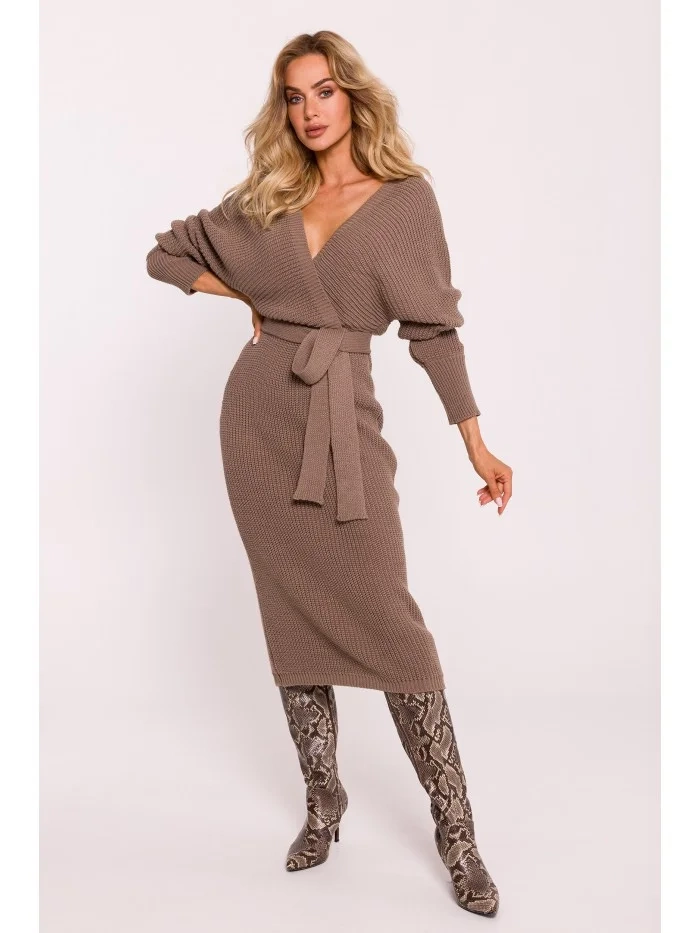 INFORMACE O PRODUKTU: kabelový úplet zavinovací svetrové šaty výstřih ve tvaru V vpředu a vzadu dlouhý netopýří rukáv s žebrovanými manžetami přiléhavá sukně střední délky pásek na zavazování přetažený přes hlavu naše modelka je vysoká 171 cm a nosí velikost S navrženo a vyrobeno v Polsku