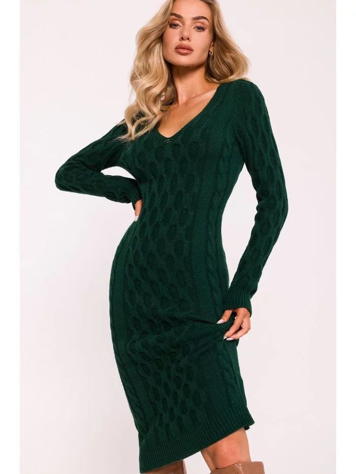 Popis Dámské svetrové šaty M824 Tmavě zelená - MOE