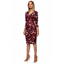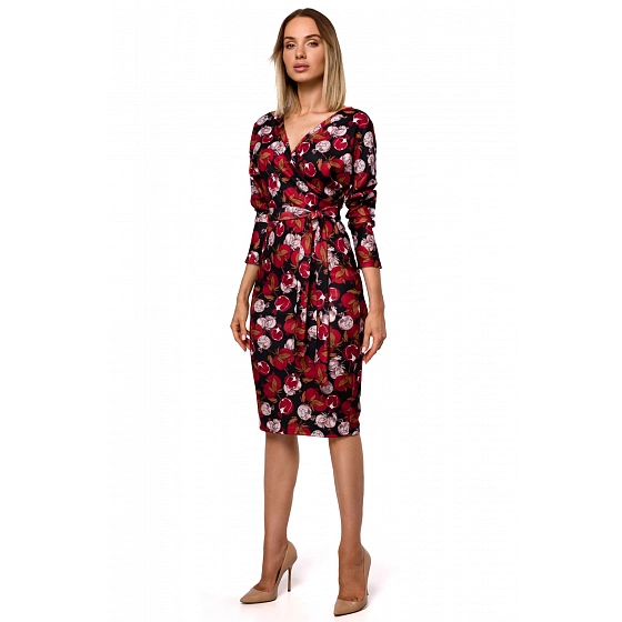 Přiléhavá tužková sukně, volný zavinovací top s dlouhými rukávy a páskem pro dotvoření efektu. Tyto šaty s pestrobarevným potiskem jsou smyslné a pohodlné díky elastickému úpletu.