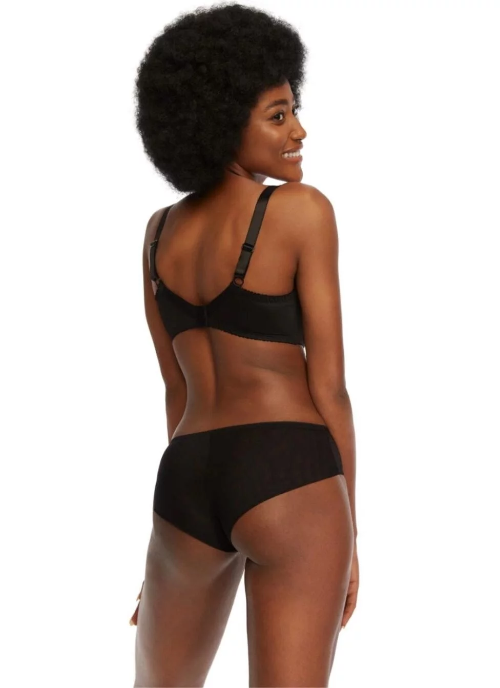 Košíčky podprsenky jsou vyrobené z jemné puntíkované krajky a jejich horní linii tvoří síťovina, která je ozdobená efektní výšivkou. Boky jsou zesílené svislými kosticemi. Ramínka tohoto modelu není možné odepnout.