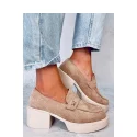 Dámské semišové mokasíny na podpatku. Pokud oceňujete klasické střihy, tento model vás jistě osloví... Široký podpatek 6 cm a platforma (2 cm) zajistí pohodlí při každém kroku. Přesvědčte se sami, jak pohodlně se v nich budete cítit : ) Vnější materiál - ekologický semiš.