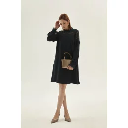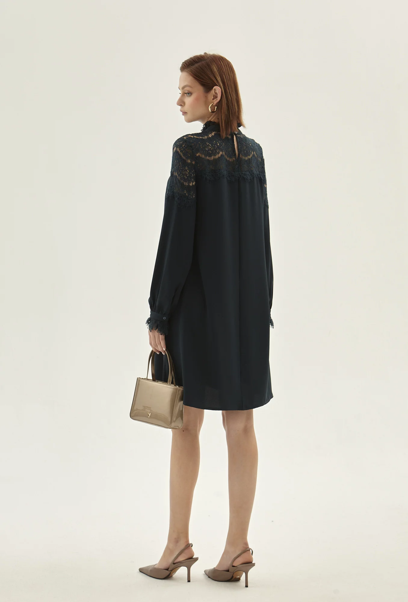 Černé šaty s krajkovým panelem jsou zárukou dokonalého stylu. Je naprosto rafinovaná a smyslná, ideální pro zvláštní příležitosti. Díky volnému střihu se budete cítit uvolněně, krajkové panely na výstřihu a rukávech mu dodají vznešenost. V těchto šatech vypadáš skvěle. Modelka na fotografii měří 172 cm a nosí velikost 36.
