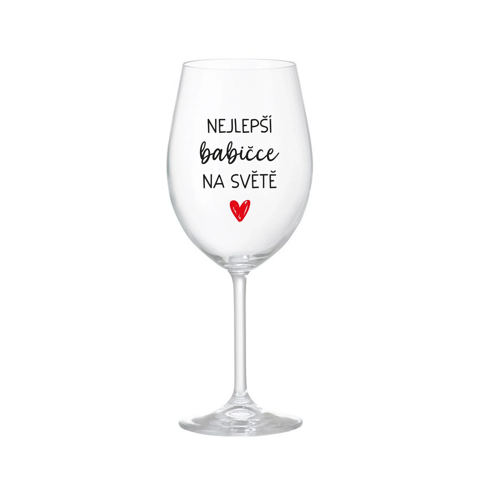 Vinná čirá sklenice s originálním motivem NEJLEPŠÍ BABIČKA NA SVĚTĚ je krásným a osobitým dárkem, které ale využijete i Vy sami třeba ve chvílích, kdy si budete chtít zpříjemnit náročný den. Tyto originální vinné sklenice jsou totiž nejen pro výjimečné události, ale i pro běžné večery, které si chcete zpříjemnit sklenkou dobrého vína. Jistě proto potěší každého milovníka vína, i toho, kdo si umí svůj život vychutnat plnými doušky. Materiál sklo. Vyrobené s láskou v ČR