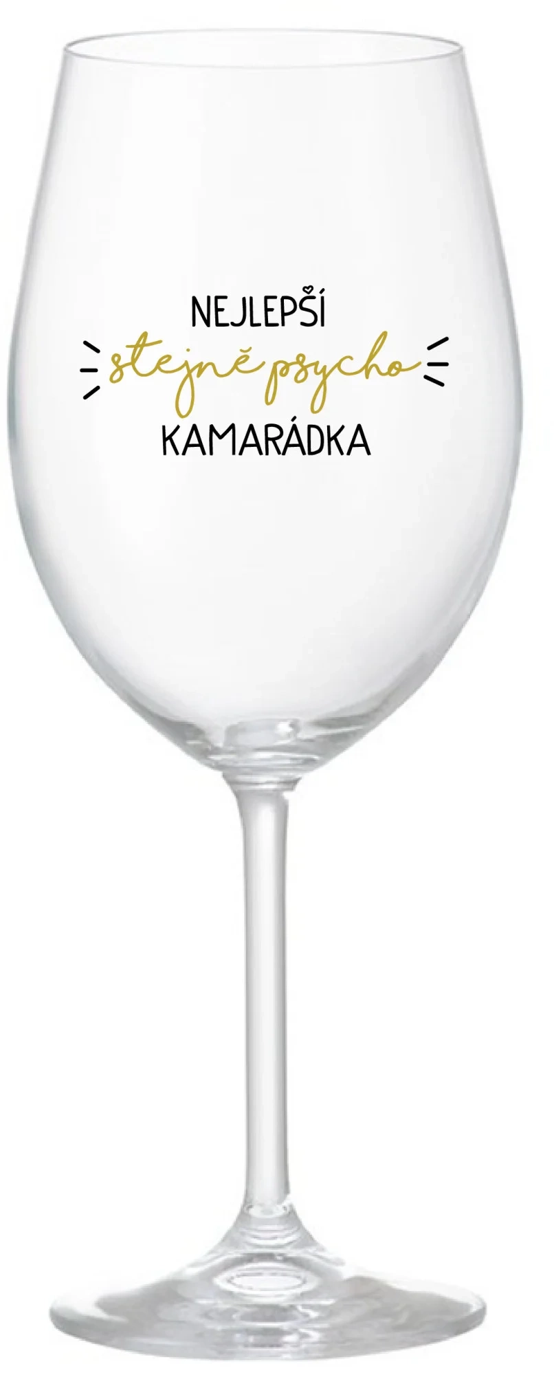 Vinná čirá sklenice s originálním motivem NEJLEPŠÍ STEJNĚ PSYCHO KAMARÁDKA je krásným a osobitým dárkem, které ale využijete i Vy sami třeba ve chvílích, kdy si budete chtít zpříjemnit náročný den. Tyto originální vinné sklenice jsou totiž nejen pro výjimečné události, ale i pro běžné večery, které si chcete zpříjemnit sklenkou dobrého vína. Jistě proto potěší každého milovníka vína, i toho, kdo si umí svůj život vychutnat plnými doušky.