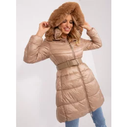 Tmavě béžová dámská zimní bunda s kapucí .