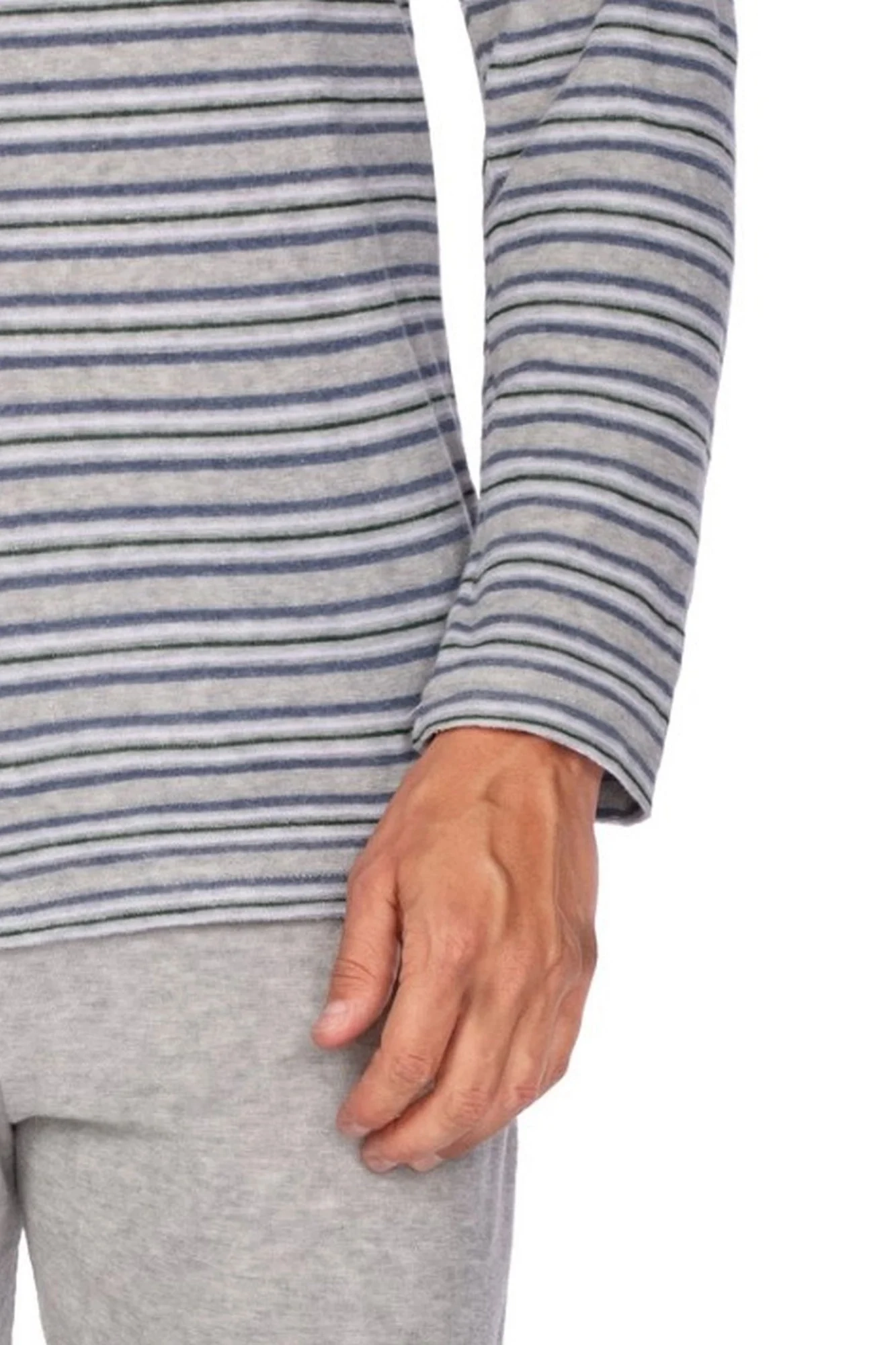 Pánské pyžamo 450 grey REGINA - z vysoce jakostní froté bavlny - pruhované tričko s dlouhými rukávy - pohodlné dlouhé šedé kalhoty