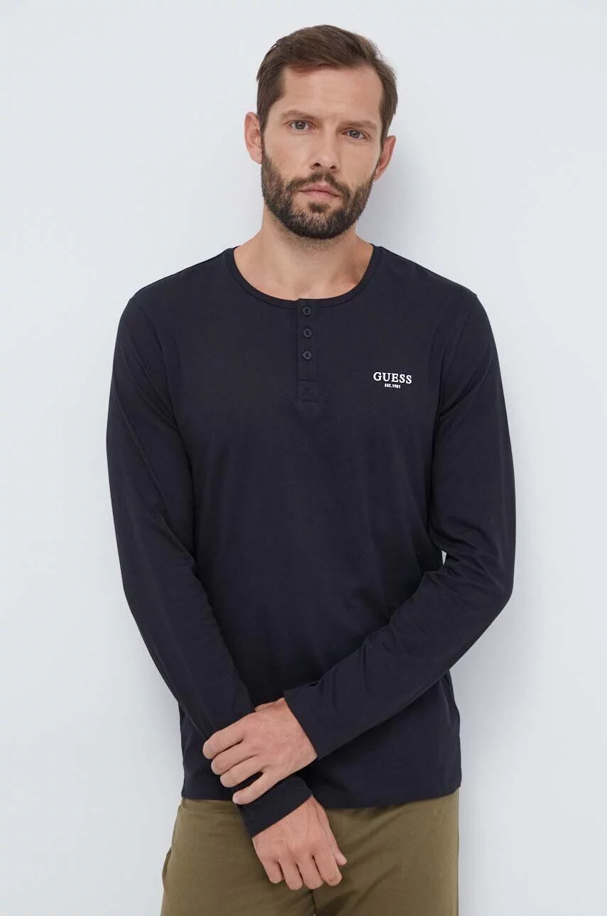 Pánské pyžamo od značky Guess - dlouhý rukáv - kulatý výstřih s knoflíčky - logo Guess  - dlouhéVíce