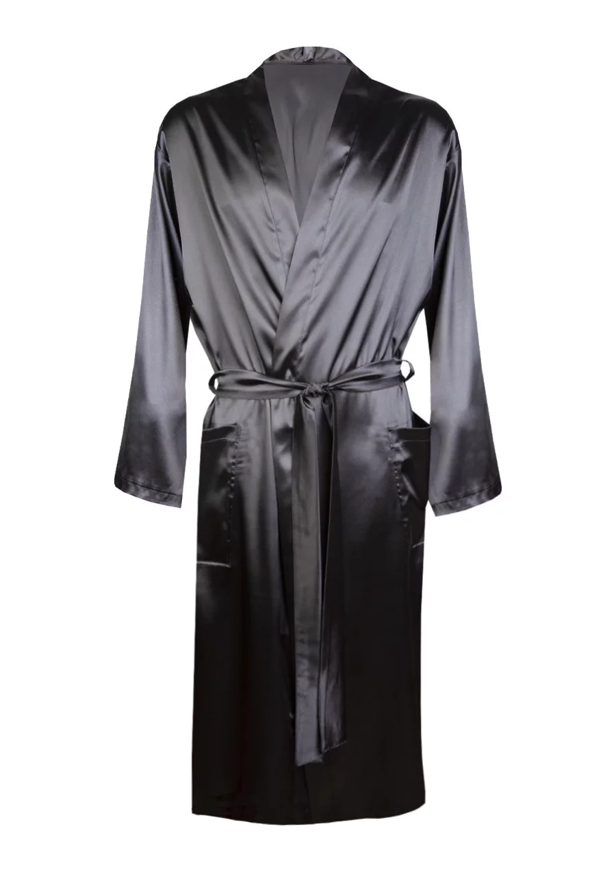 Saténová košilka, dvě kapsy, pásek na zavazování. Dlouhý rukáv.