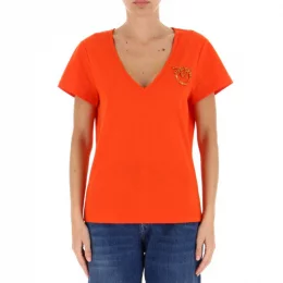 Vlastnosti: Tričko s krátkým rukávem z bavlněného žerzeje s výstřihem do V výšivka Love Birds