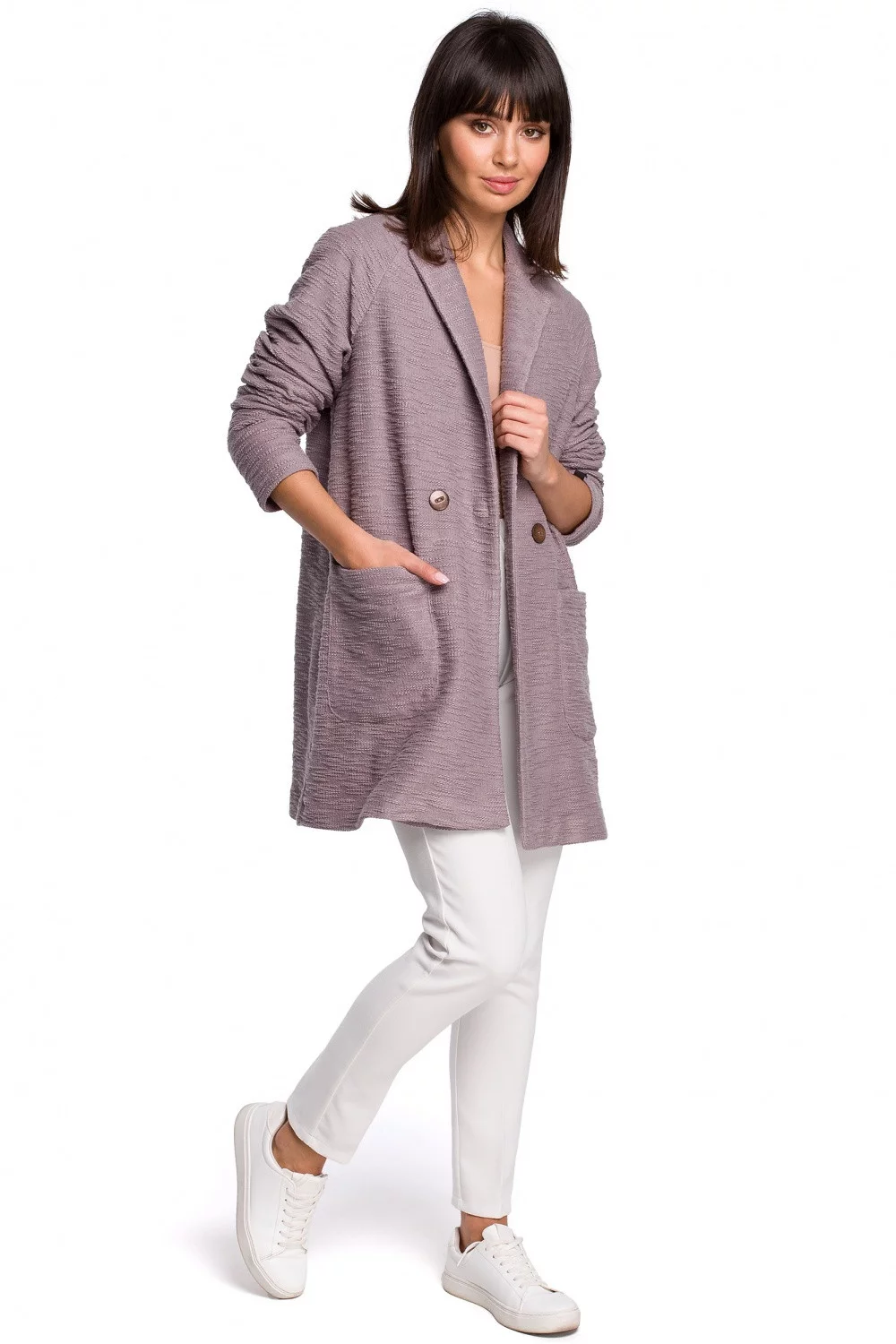 Tkaný materiál, otevřený střih saka, střih bez límce, falešná kapsa vpředu, dlouhé rukávy, regular f