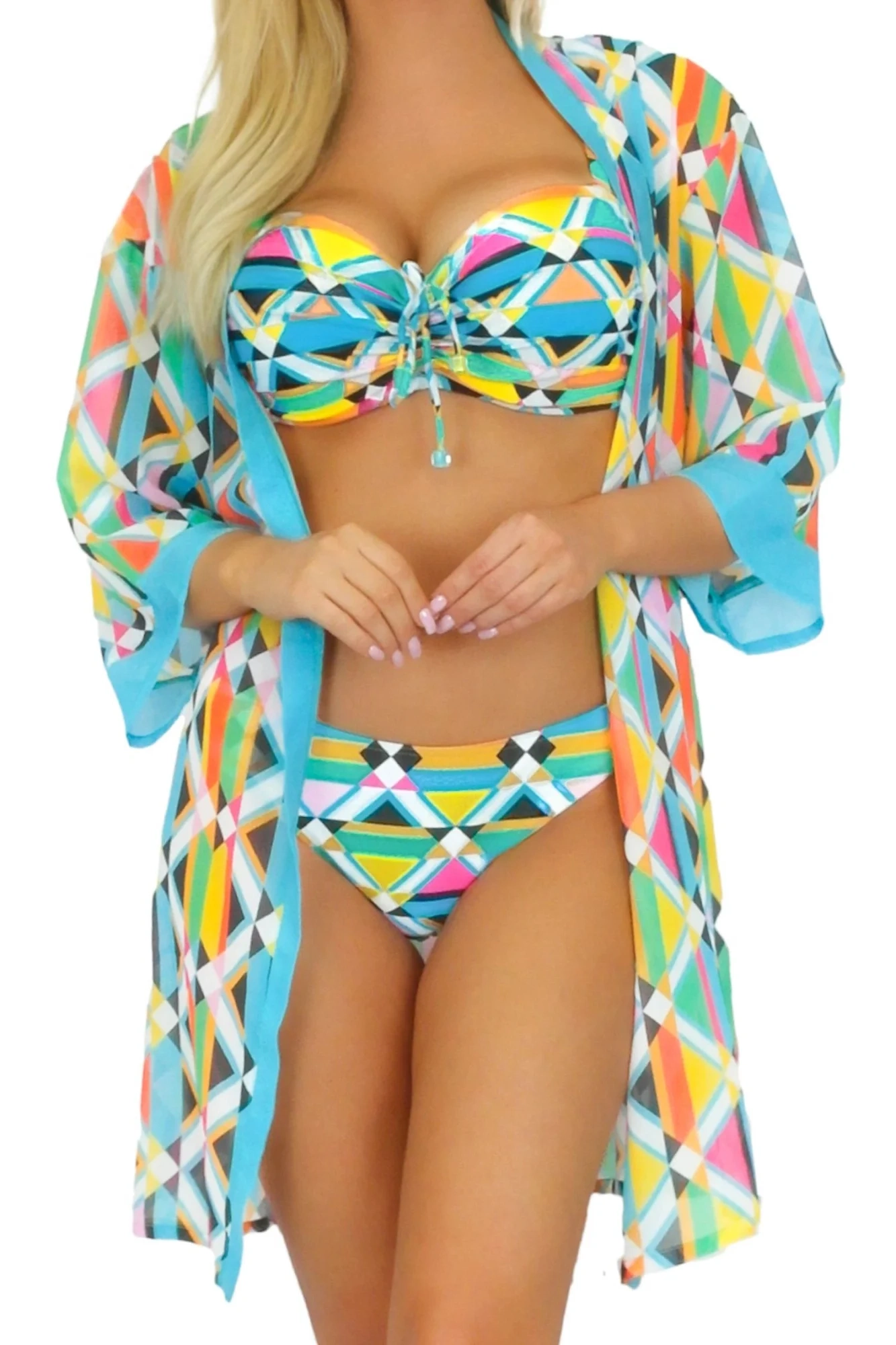 Plážové šaty 11D80SZ 34 SELF - z jemné vzdušné látky - se vzorem - tříčtvrteční rukávy - odolné proti UV záření - nemačkavý materiál