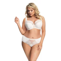 Stylová podprsenka krémové barvy z nové kolekce Gorsenia v poloměkkém provedení. Hladké košíčky v horní části svádějí ke krásnému, jemnému krajkovému lemování. Jemné saténové lemování elegantně dotváří design. Ramínka jsou širší, neodepínací, nastavitelná. Obvod, který dobře drží. Osvědčený, velmi ženský design ideální pro větší prsa. Podprsenka bude ideální pod podzimní svetry. Složení: 71 % polyamid, 21 % bavlna, 8 % elastan.
