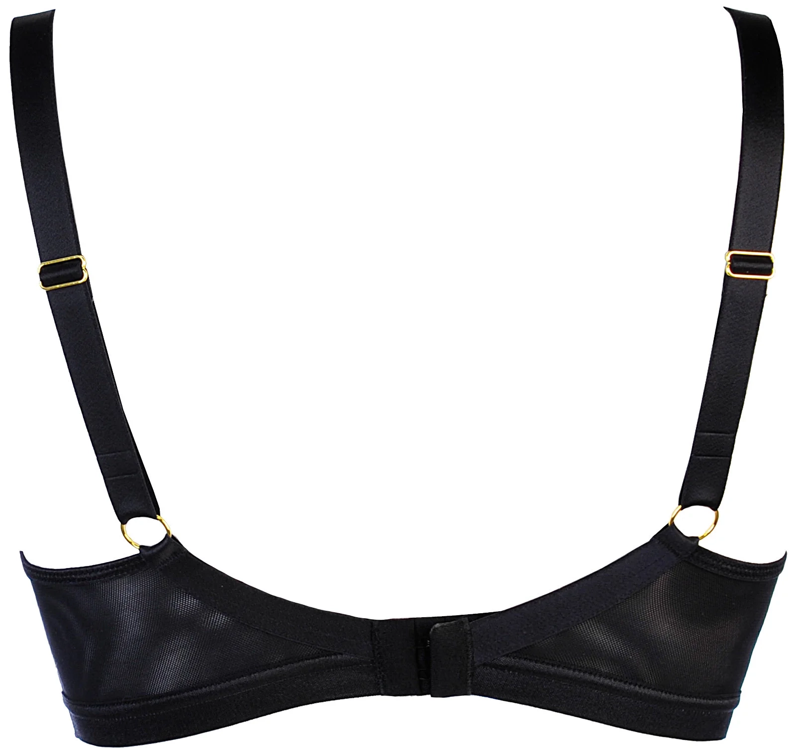 Měkká podprsenka V-11041, okouzlující jemnou výšivkou s motivem růží, je návrhem pro ženy, které ocení rafinovaný design a nejkvalitnější látky. Balkonetní střih krásně zdůrazní krásu dekoltu a měkká látka pohladí pokožku. Eleganci dodávají detaily ve zlaté barvě. Široký pás pod poprsím a na zádech zaručuje nejvyšší komfort nošení. Skvěle vypadá v kompletu s podvazkovým pásem V-11042 a tangy V-11048.