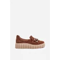 Dámské nazouvací polobotky byly vyrobeny z přírodní kůže. Stojí na masivní platformě. Plastová ozdoba na přední straně. Pod jazykem se nachází pružný pásek, který umožní přizpůsobení obuvi velikosti nohy. Svršek z přírodní kůže zajistí pohodlí po celý den! Zaoblená špička. Vyztužená pata.