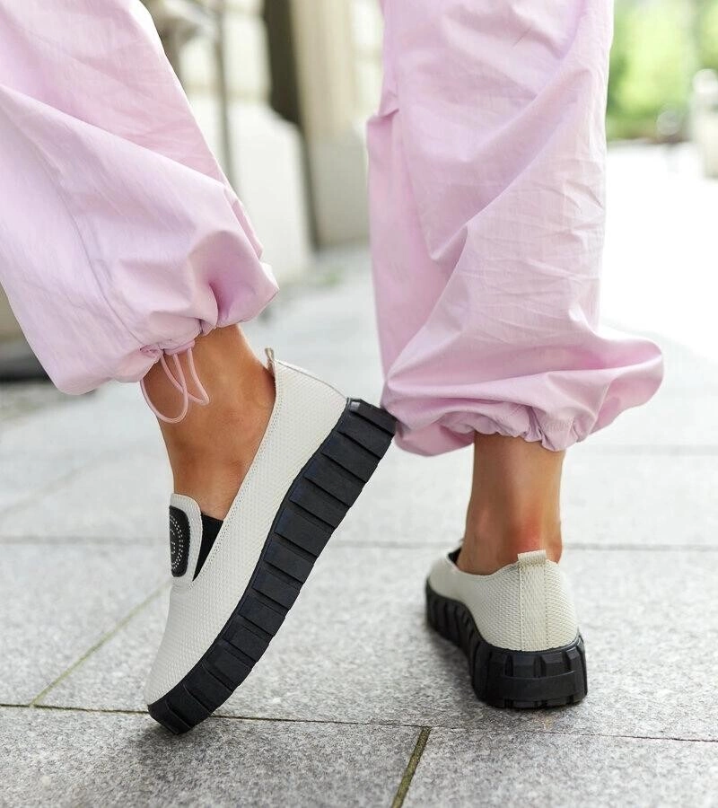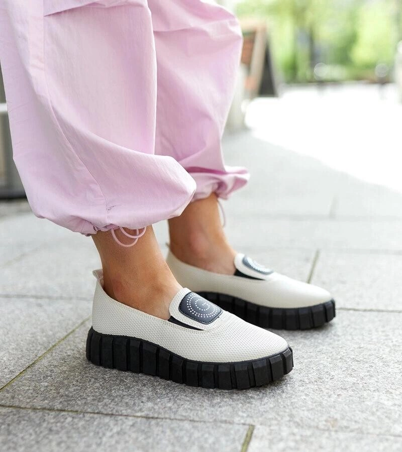 Černo-bílé polobotky s masivní podrážkou Teska Ace jsou moderní boty pro ty, kteří hledají progresivní obuv. Jejich nízký design a mandlový tvar špičky jim dodávají jedinečný charakter a jsou velmi pohodlné díky možnosti zasunutí nohy. Vyrobené z vysoce kvalitní gumy, poskytují odolnost a pohodlí po mnoho hodin nošení. Skvělé na každý den i speciální příležitosti. Materiál povrchu: ekologická semišová kůže. Vyztužení: žádné. Materiál podrážky: guma. Barva podrážky: černá. Uzavírání: zasunutí. Kolekce: jaro/léto.