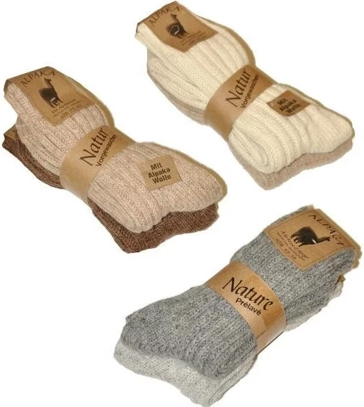 Ponožky z teplé vlny (alpaka 40%, 52% vlna, 8% polyamid) - ideální na zimní mrazy. Baleno po 2ks.